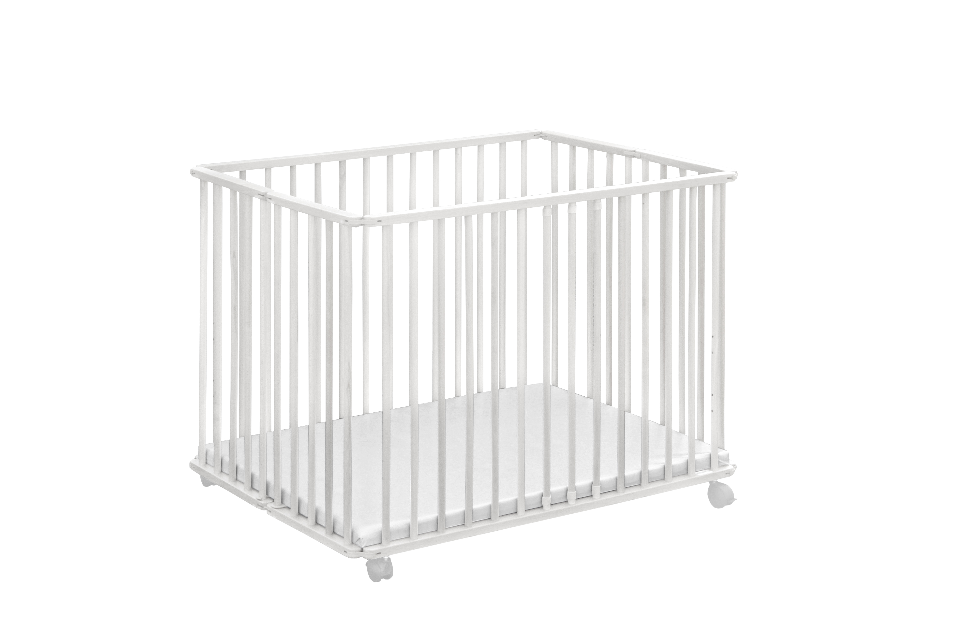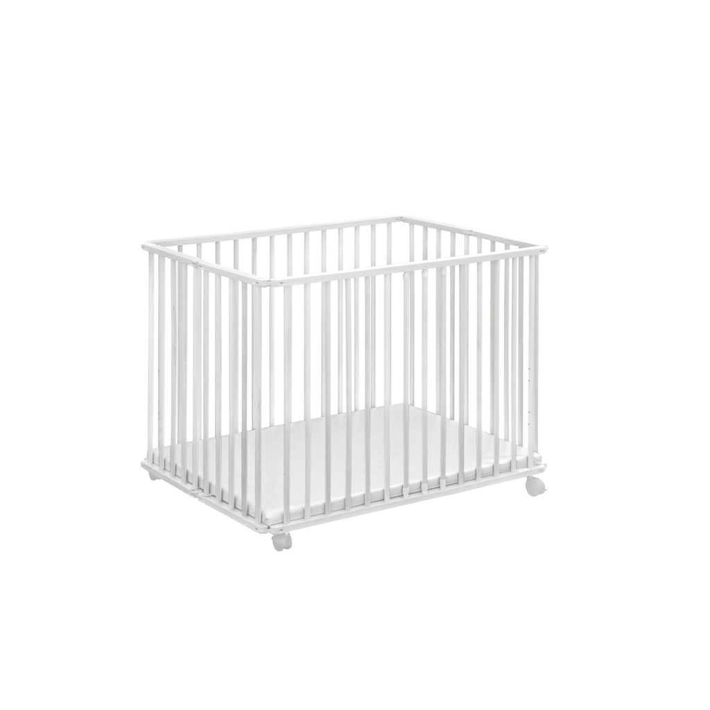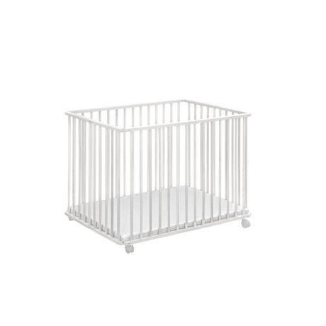 Parc bébé en bois pliant avec roulettes - Blanc