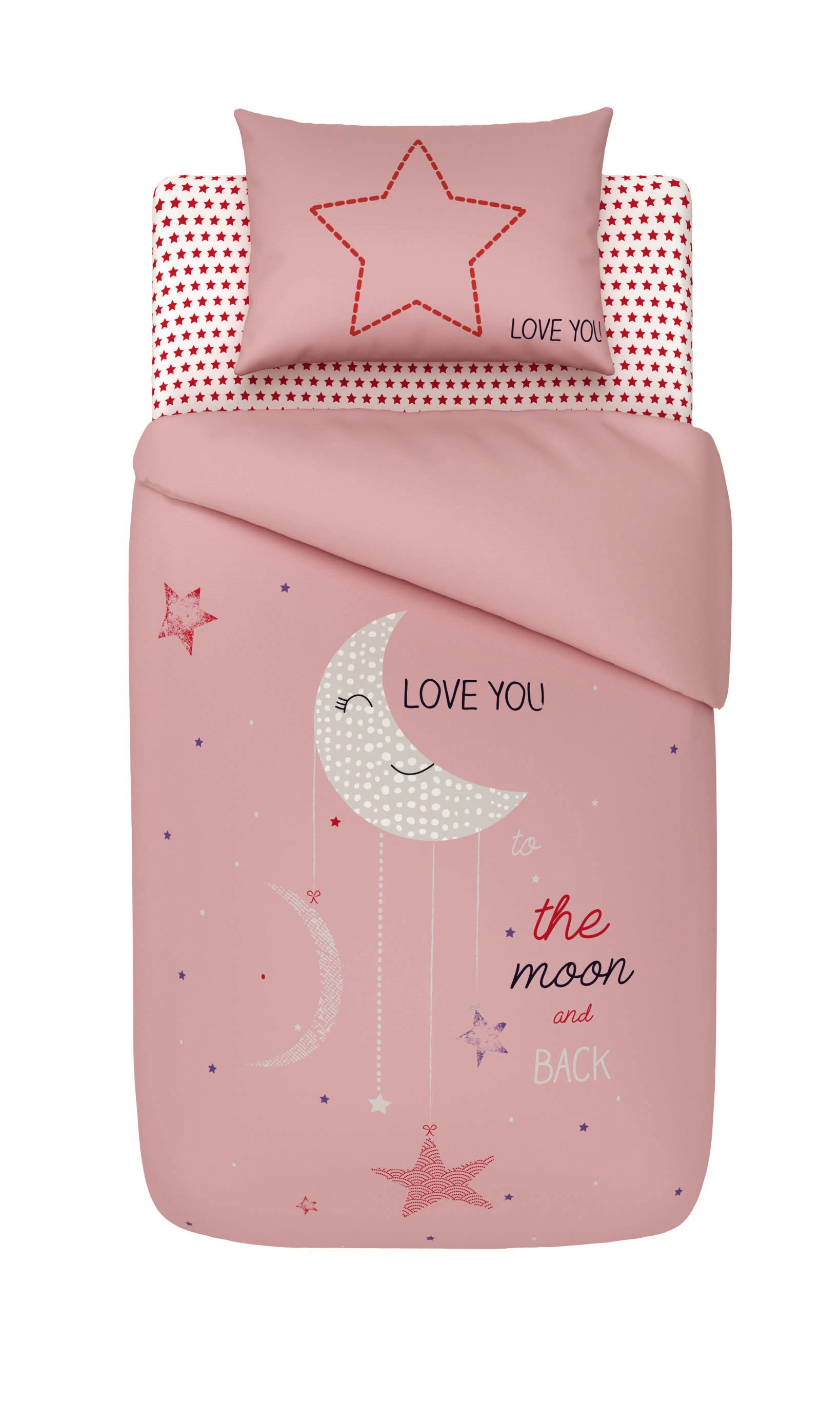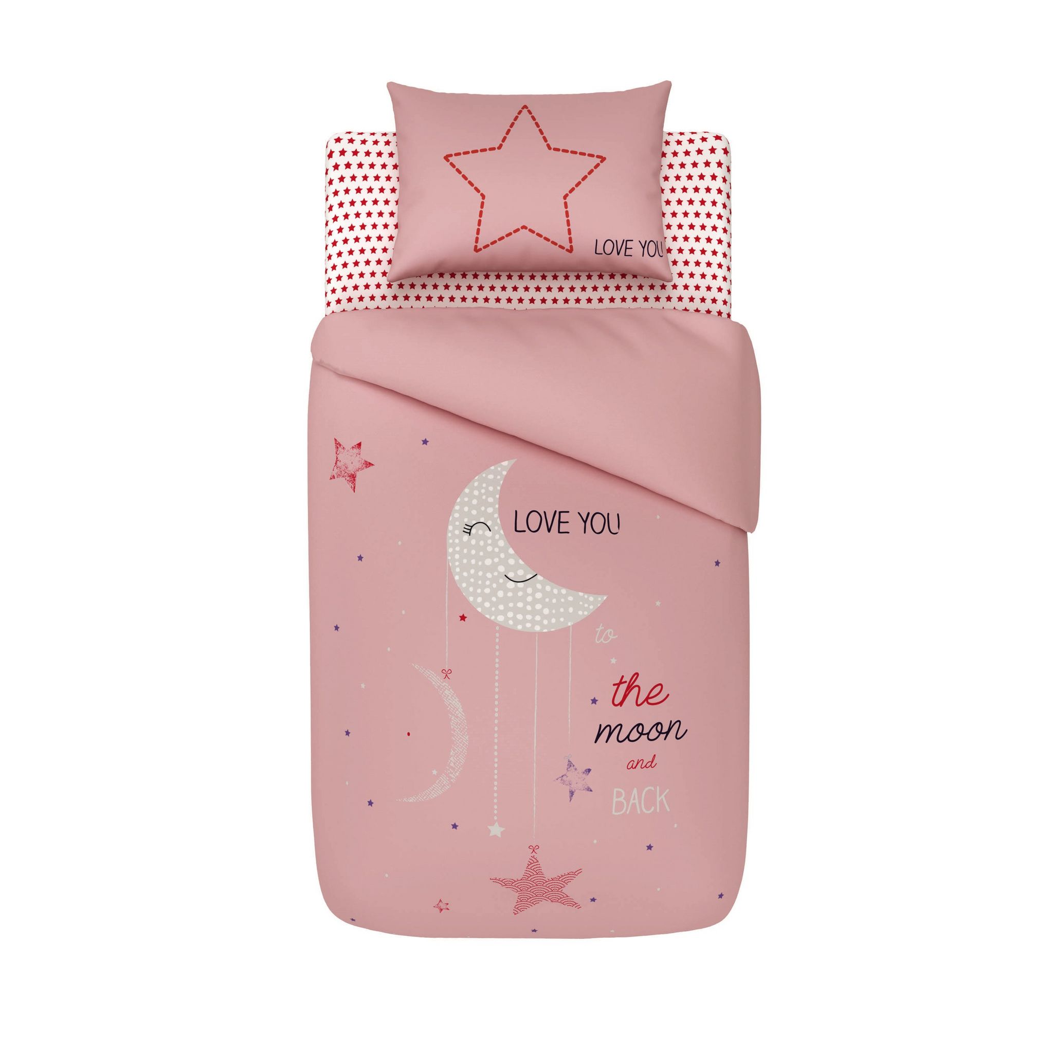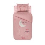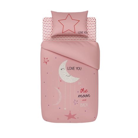 Cette jolie parure de lit bébé "Love you to the moon and back" a été conçue par la Auchan Baby. Ultra complète avec une housse de couette 100 x 140 cm, une taie d'oreiller 60 x 40 cm ainsi qu'un drap housse 60 x 120 cm, elle apportera une touche de décoration dans la chambre de votre petite fille chérie.