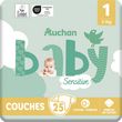 Parce que le bien-être de votre bébé est notre priorité, les couches Auchan Sensitive allient protection, efficacité et sécurité. Elles sont composées de fibres de cellulose certifiées FSC® blanchies sans chlore, et de canaux d'absorption pour une peau bien au sec et une absorption maximale. Le voile en contact avec la peau est d’origine naturelle et enveloppe Bébé dans un nid de douceur. Canaux d'absorptionBarrières anti-fuitesDécoupe ombilicaleIndicateur d'humiditéUltra douxVoile extérieur enrichi en coton imperméable et respirantToucher ultra secVoile en contact avec la peau d'origine naturelle testé dermatologiquementEmballage en papier 100% recyclable0% parfum, lotion, colorant en contact avec la peau