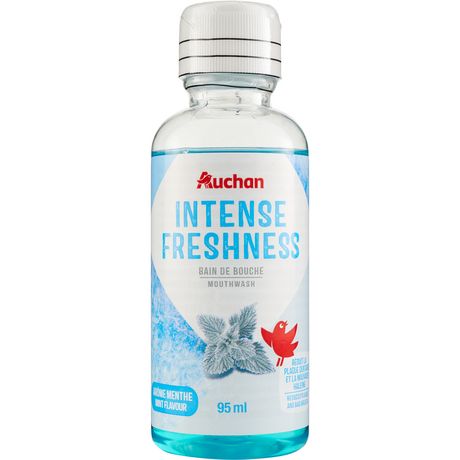 Le bain de bouche fraîcheur intense AUCHAN aide à éliminer la plaque dentaire. Grâce à son arôme menthe, il réduit la mauvaise haleine et procure une sensation de fraîcheur. Et grâce à son format 95ml emportez-le partout avec vous ! Convient à un usage quotidien.