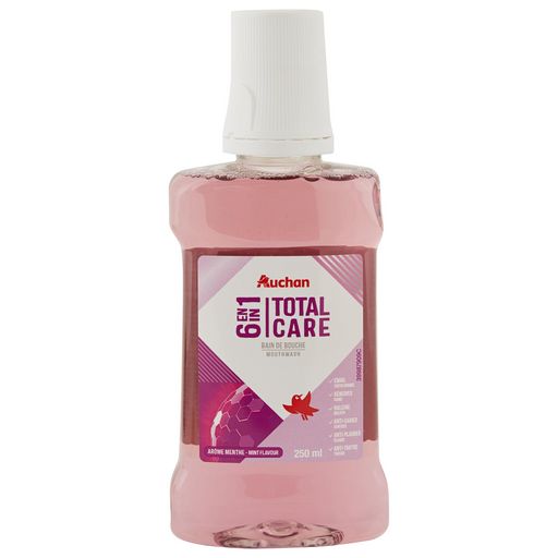 Le bain de bouche 6en1 AUCHAN offre un soin complet à votre bouche. Il réduit la plaque dentaire, maintient les gencives saines, renforce l'émail des dents, aide à protéger les dents contre les caries, prévient la formation du tartre et rafraîchit l'haleine jusqu'à 12h avec son arôme menthe. Convient pour un usage quotidien. Degré d'alcool :18,06