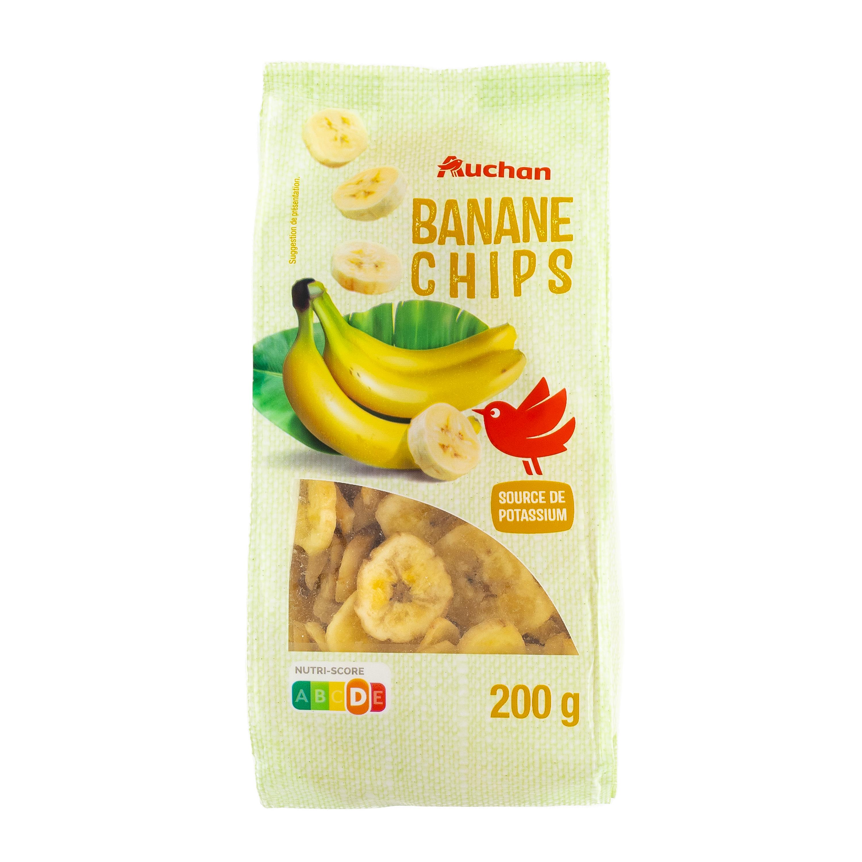 Bananes 55% minimum, huile de coco, sucre de canne, arôme naturel. Traces éventuelles d'ARACHIDES, FRUITS À COQUE, GRAINES DE SÉSAME, SULFITES, GLUTEN et SOJA.