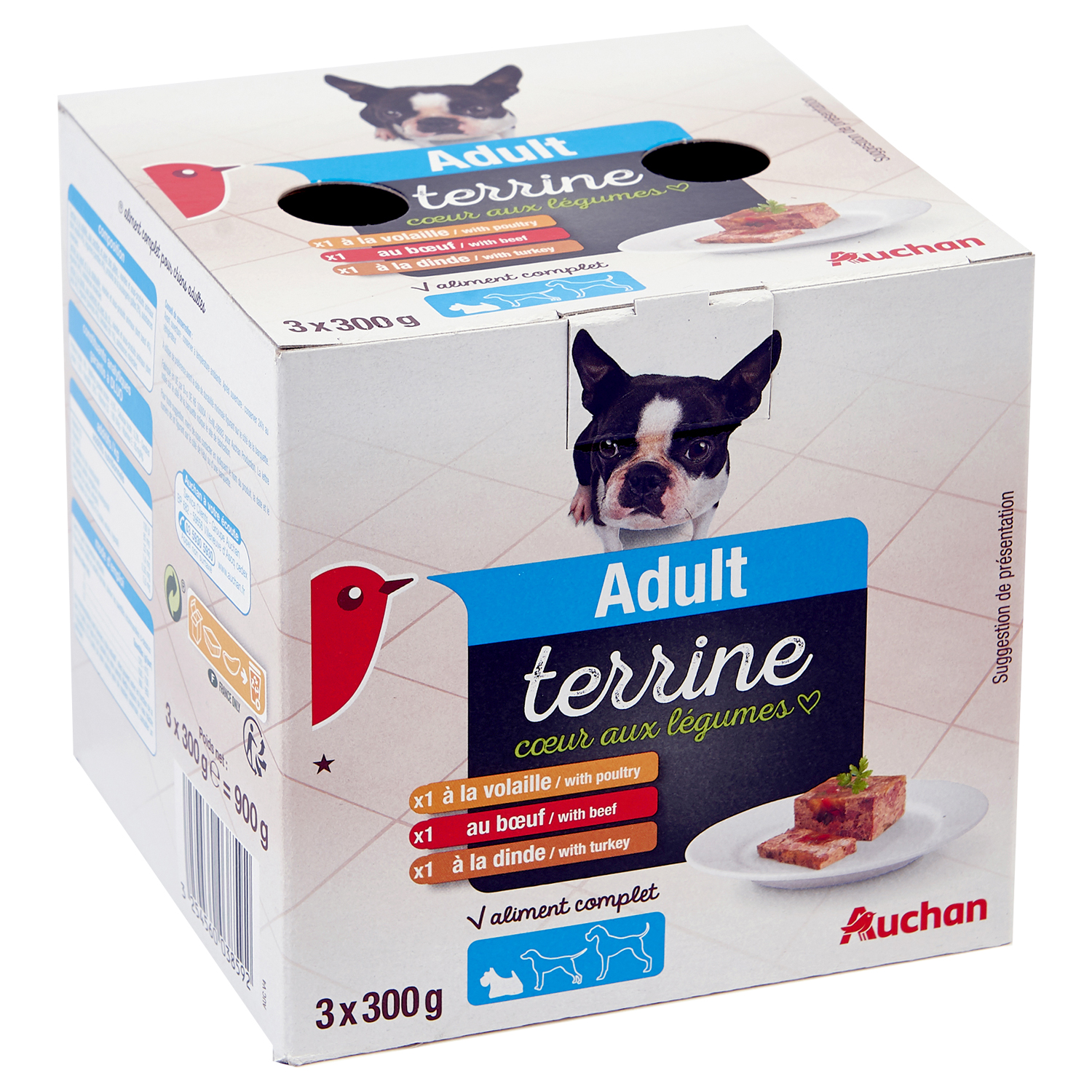 Barquette terrine pâtée boeuf dinde volaille pour chien adulte