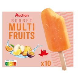 10 bâtonnets de sorbet aux fruits, aromatisés.