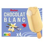 Bâtonnets de glace à la vanille (69%) , enrobage de chocolat blanc (31%)