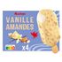 Bâtonnets composés d'une glace à la vanille 69.5%, d'un enrobage au chocolat blanc 26.7% avec des morceaux d'amandes grillés 3.8%