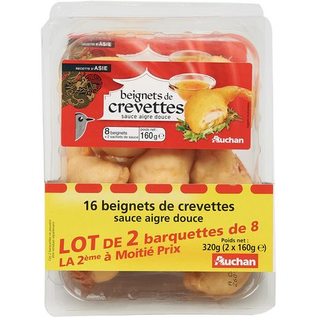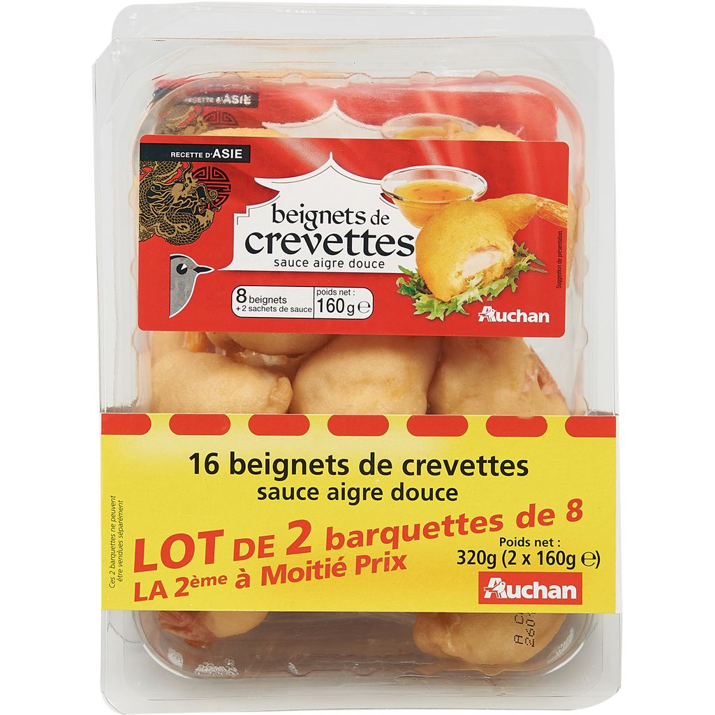 AUCHAN Beignets de crevettes sauce aigre douce 16 pièces 2x160g