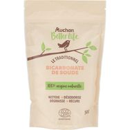 Pour réduire l’impact environnemental, respectez les doses recommandées d’utilisation.> Dans la cuisine :- Pour nettoyer les surfaces (évier, plan de travail, four à micro-ondes, réfrigérateur, etc.) saupoudrer du bicarbonate de soude sur une éponge humide ou directement sur la zone à nettoyer. Frotter puis rincer à l'eau potable les surfaces en contact avec les denrées alimentaires.- Pour récurer un four très encrassé : réaliser une pâte de bicarbonate de soude assez épaisse en ajoutant petit à petit 300 ml d'eau chaude dans 7 à 8 cuillères à soupe de bicarbonate de soude. Appliquer cette pâte sur les parois sales du four et laissez reposer au minimum 5 heures, voire une nuit. Frotter à l'aide d'une éponge non abrasive. Rincer à l'eau tiède. Renouveler l'opération si le four est très encrassé.- Pour neutraliser les mauvaises odeurs (placard à chaussures et réfrigérateur) : placer 3 cuillères à soupe de bicarbonate de soude dans une coupelle ou un verre. Renouveler l'opération tous les mois.> Dans la salle de bain :- Pour nettoyer les traces de dépôt de savon : saupoudrer du bicarbonate de soude sur une éponge humide ou directement sur la zone à traiter. Frotter et rincer.