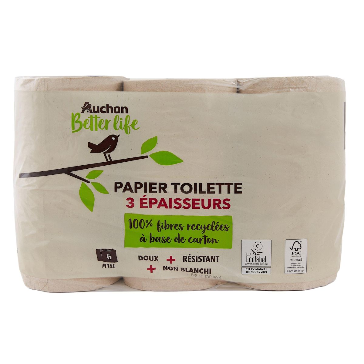 100% fibres recyclées à base de carton Doux et résistant, ce papier toilette est fabriqué à partir de cartons recyclés. Ce papier non blanchi et non traité conserve sa couleur naturelle.Grâce au tri de vos cartons usagés, notre fabricant les recycle et les transforme en papier d'hygiène. Vous utilisez un produit recyclé de qualité, non blanchi.