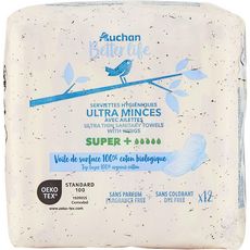 Serviettes hygiéniques en coton bio avec ailettes ultra minces super+