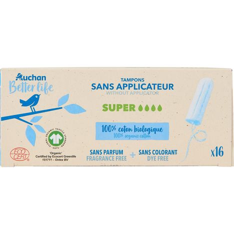 Tampons sans applicateur coton bio super