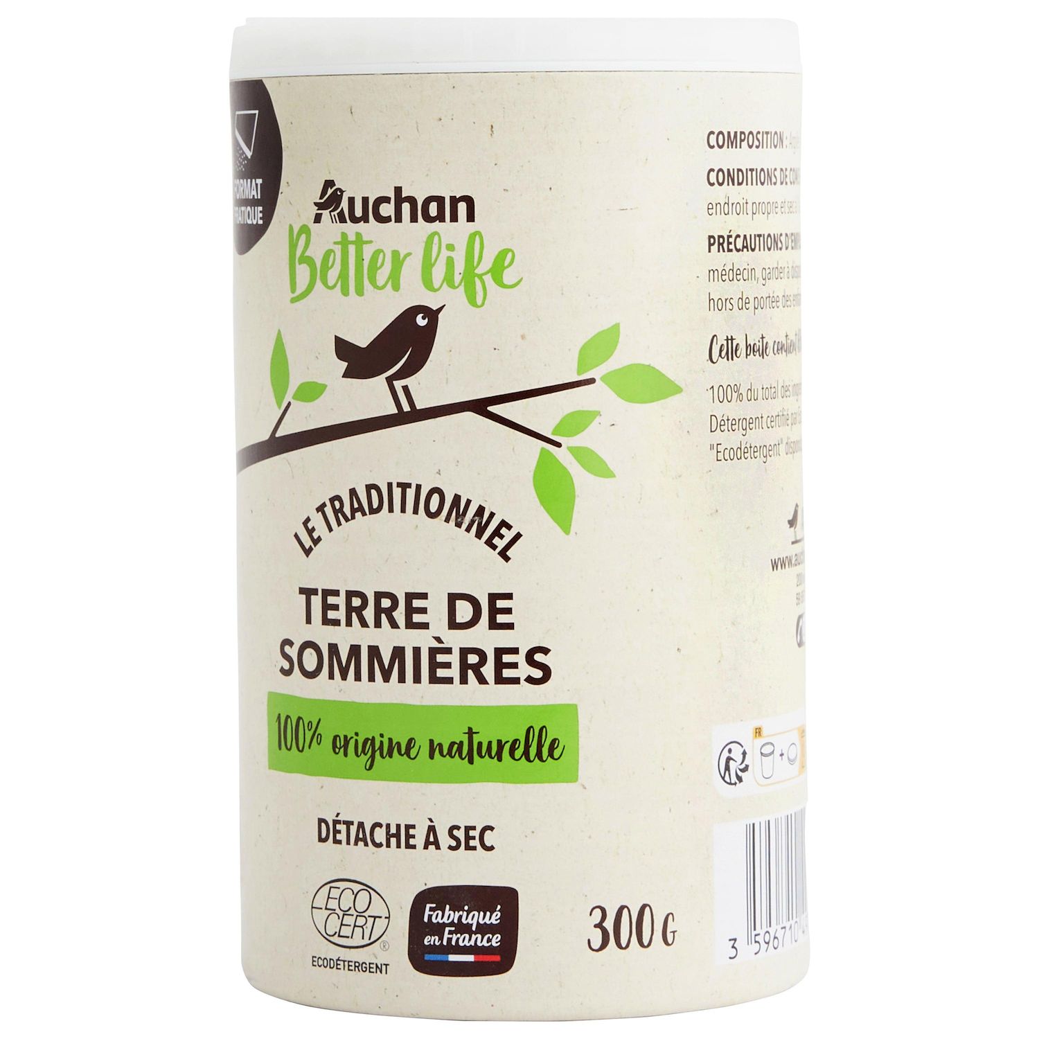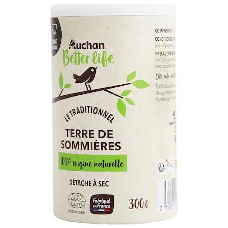 La terre de Sommières est une argile qui est particulièrement efficace comme détachant à sec, sur les taches grasses récentes (huile, graisse...) mais aussi sur d'autres types de taches liquides sur les tissus, textiles, moquettes et surfaces fragiles (sols poreux et marbres). Adapté aux surfaces qui craignent l'eau.Détergent certifié par ECOCERT Greenlife selon le référentiel ECOCERT « Ecodétergent » disponible sur http://detergents.ecocert.com.