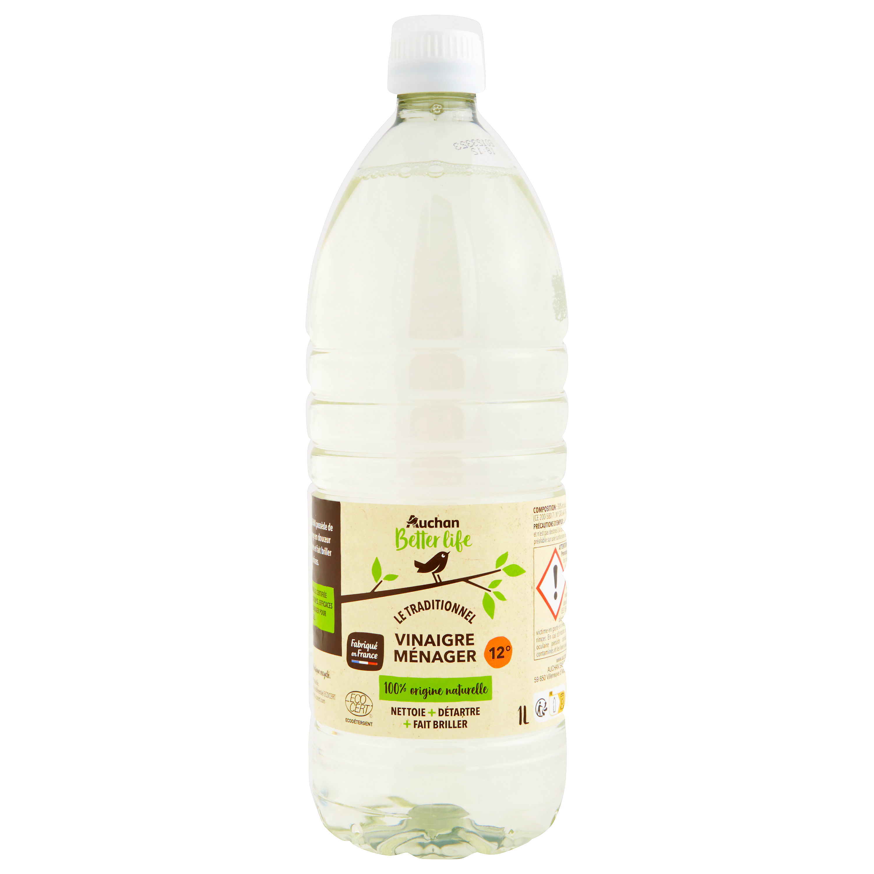 Le vinaigre d'alcool ménager Auchan possède de multiples fonctions pour le ménage en douceur de votre maison. Il nettoie, détartre et fait briller out en respectant vos surfaces.Détergent certifié par ECOCERT Greenlife selon le référentiel ECOCERT « Ecodétergent » disponible sur http://detergents.ecocert.com