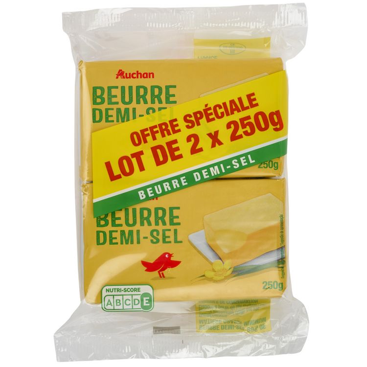Un beurre à 80% de matières grasses, en déclinaison "demi-sel", en lot "plaquette" 2x250g, pour déguster et pour cuisiner