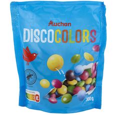 Ingrédients : sucre, beurre de cacao¹, poudre de lait entier, pâte de cacao¹, lactosérum en poudre (lait), lactose (lait), matière grasse de lait anhydre, sirop de glucose, fécule de pomme de terre, émulsifiant: lécithine de soja agents d'enrobage: shellac, cire de carnauba amidon, colorants: anthocyanines, curcumine, carotènes, rouge de betterave concentré de spiruline.Elaboré à partir de lait origine UE et/ou hors UETraces éventuelles de céréales contenant du gluten, de fruits à coque et d'arachides.Cacao: 25% minimum dans le chocolat au lait Pourcentages exprimés sur le total de la recette.¹Rainforest Alliance Certified. ra.org