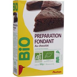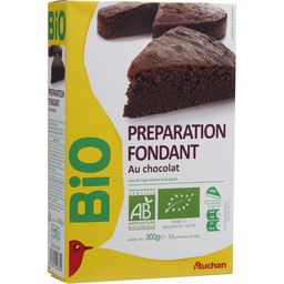 Chocolat en poudre 50% (sucre roux*, cacao en poudre* 32% minimum), sucre roux*, farine de blé* (contient gluten ), poudres à lever : tartrate de potassium et carbonate acide de sodium. *biologiques. Traces éventuelles d'oeufs, soja, lait et fruits à coques