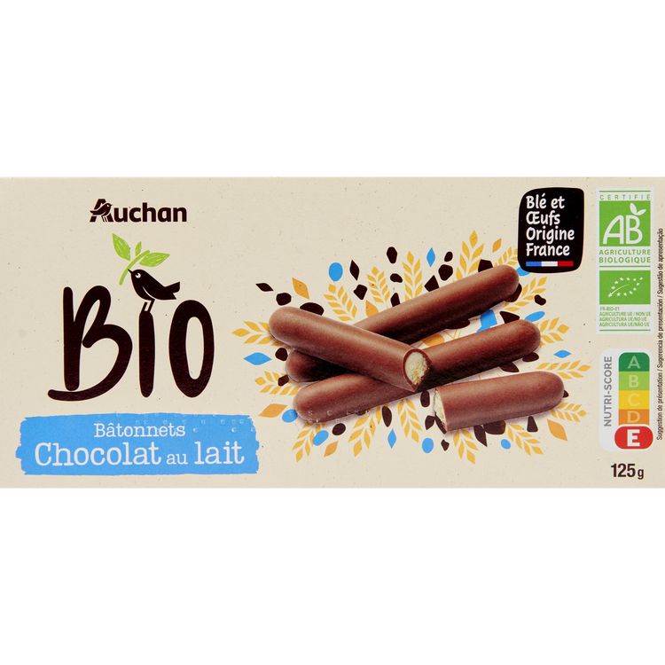 Biscuits enrobés de chocolat au lait issus de l'agriculture biologique