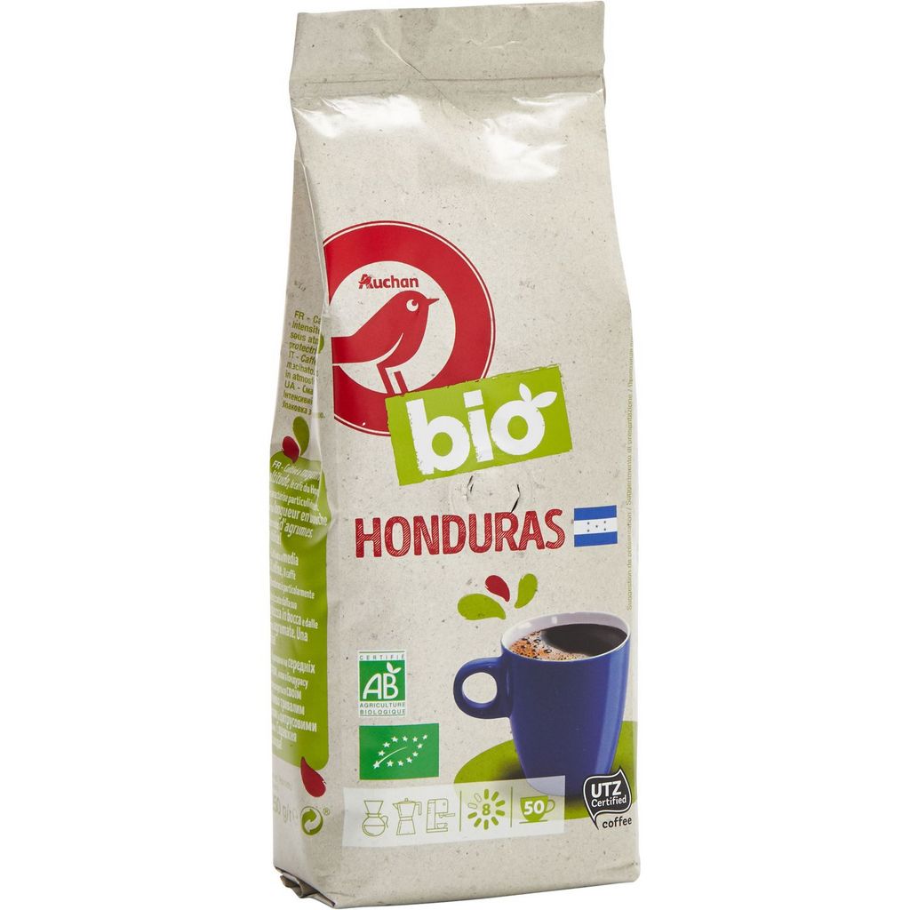 Cultivé à moyenne altitude, le café du Honduras se caractérise par sa permanence en bouche et ses notes d'agrumes, un délice ! Café issu de l'agriculture biologique. Café certifié UTZ: production durable de café. www.utz.org. Auchan bio Café moulu du Honduras 250g