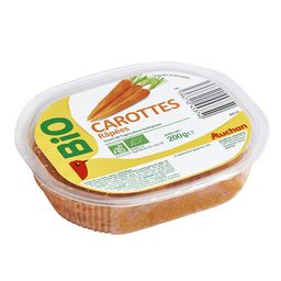 Salade de carottes râpées, biologiqueFabrication certifiée par Bureau Veritas Certification FR-BIO-10Distribution certifiée par ECOCERT FR-BIO-01