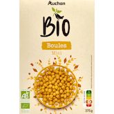 Boules de maïs extrudées enrobées de sucre et de miel, issues de l'agriculture biologique