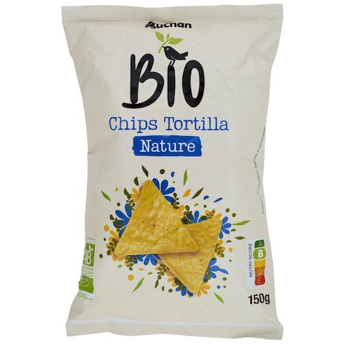 Ingrédients : farine de maïs* 77,7 %, huile de tournesol* 21,5%, sel marin 0,8%. *biologique Traces éventuelles de soja.