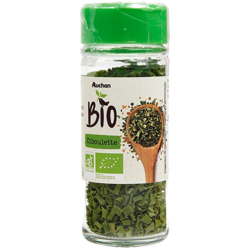 Ciboulette déshydratée issue de l'agriculture biologiqueProduction certifiée par FR-BIO-10Distribution certifiée par FR-BIO-01