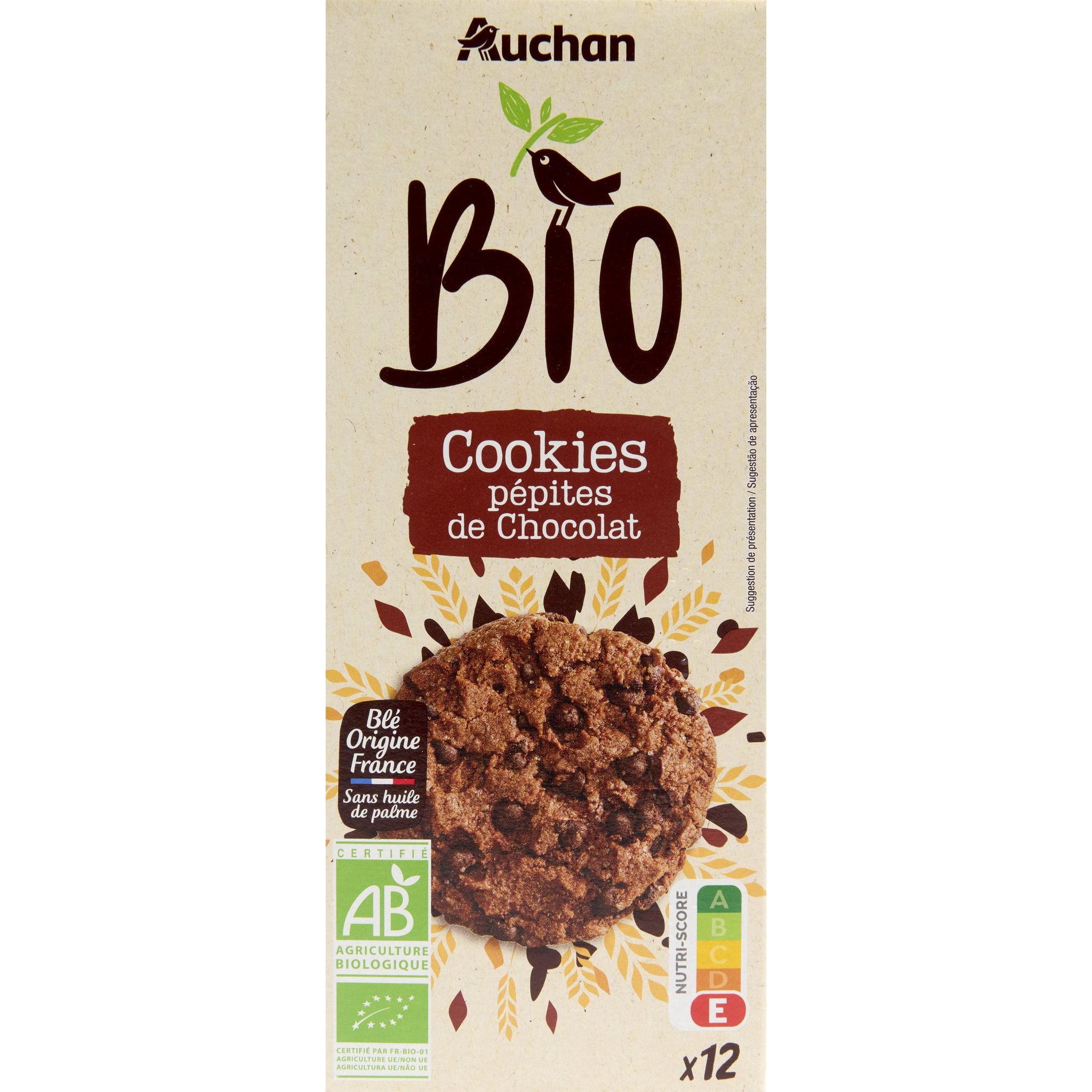 Cookies aux pépites de chocolat et au cacao maigre issus de l'agriculture biologique