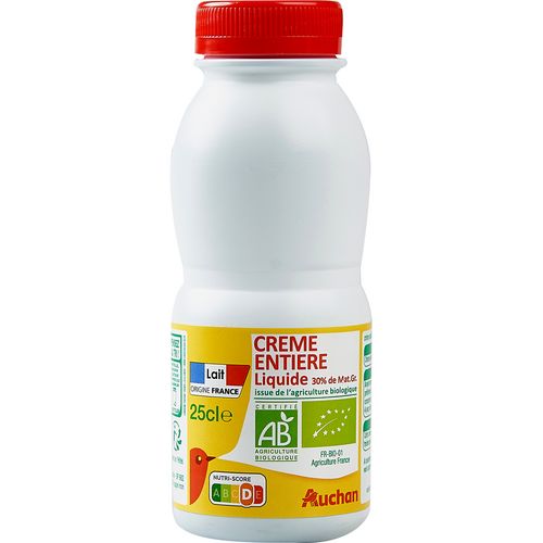 Crème entière liquide stérilisée UHT à 30% de matière grasse, biologique