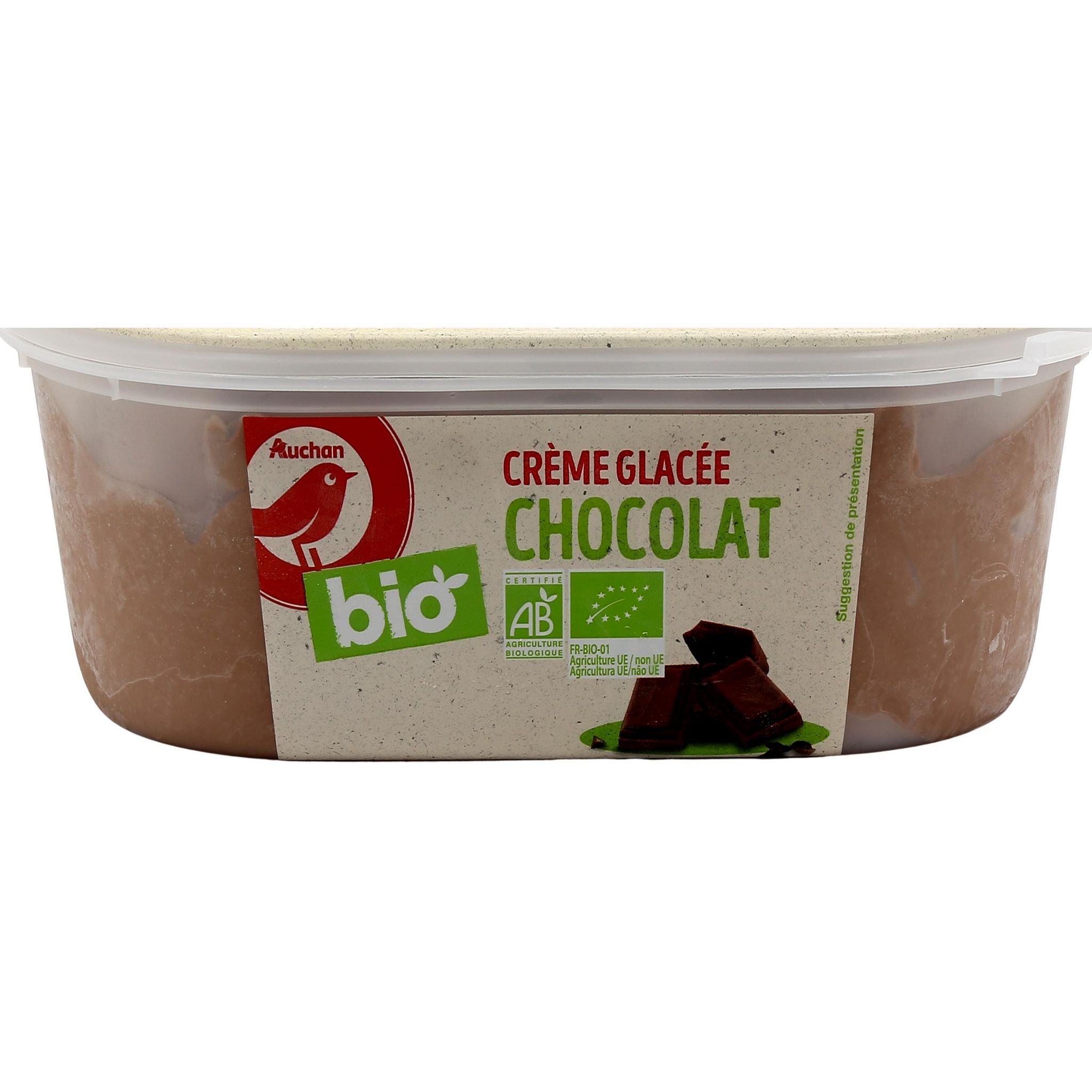 Crème glacée chocolat issue de l'Agriculture Biologique, surgelée.