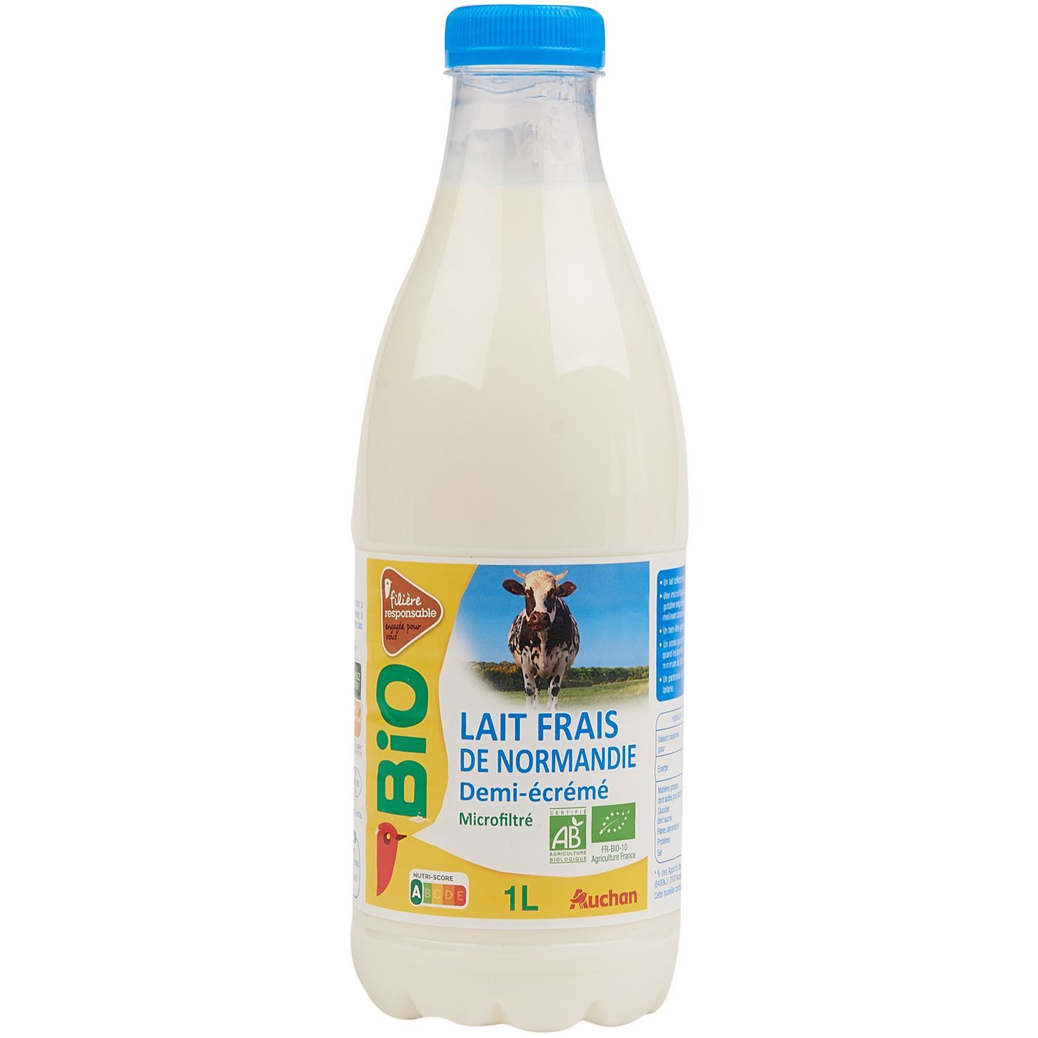 Lait frais demi écrémé microfiltré issu de l'agriculture biologique