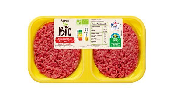 2 steaks hachés pur bœuf issus de l'agriculture biologique.