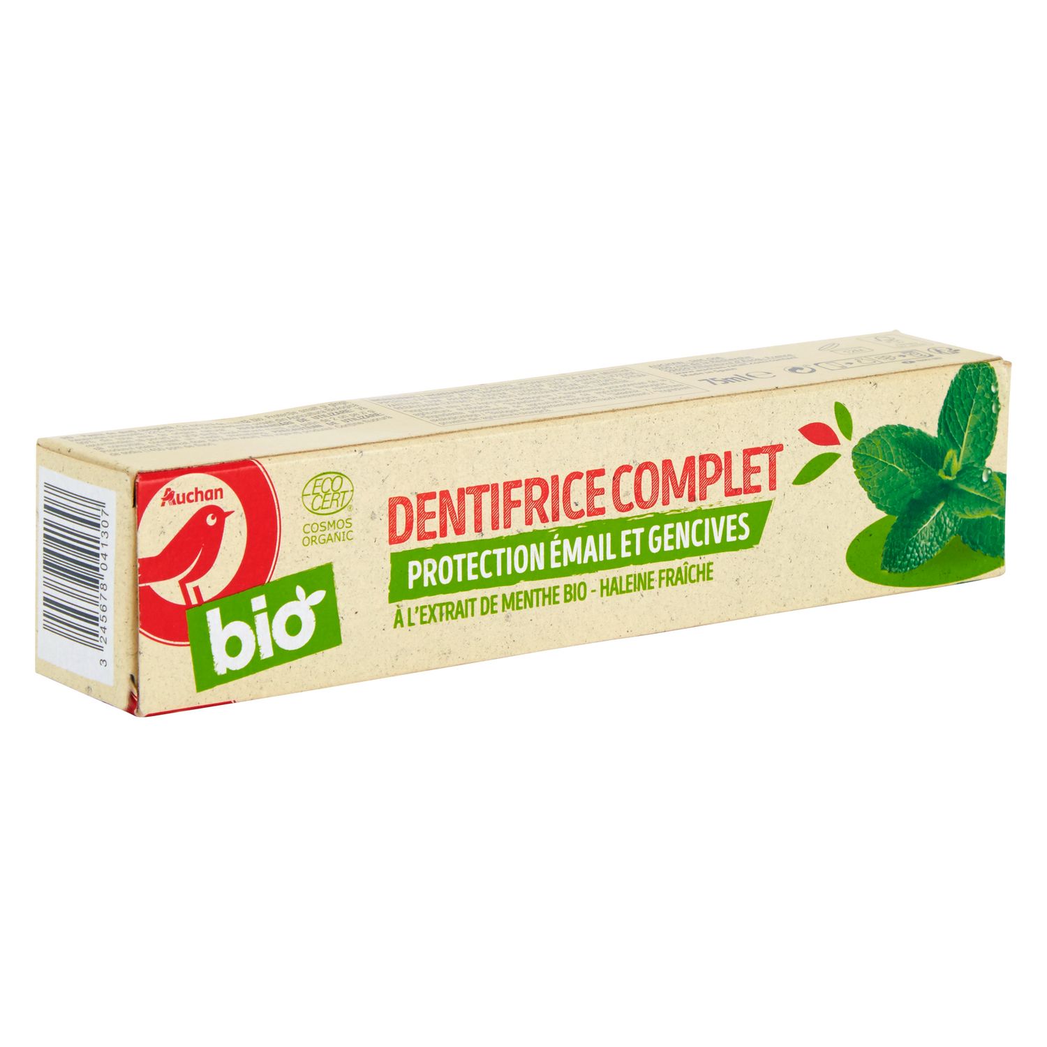 AUCHAN BIO - DENTIFRICE COMPLET - À L'EXTRAIT DE MENTHE BIO PROTECTION ÉMAIL ET GENCIVES - 75 ML E