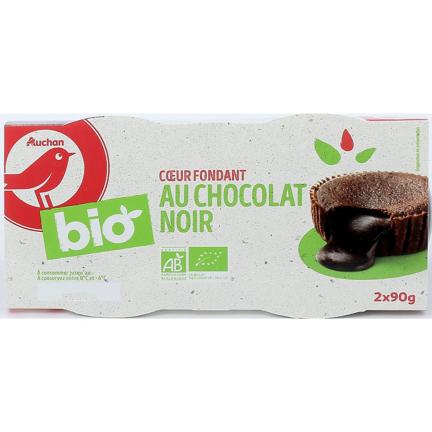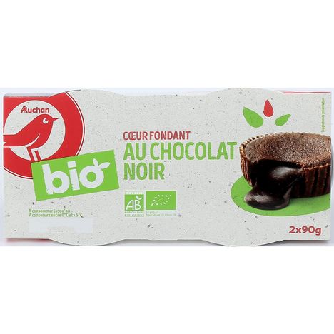 Pour les amateurs de chocolat noir et de gourmandise, Auchan développe une cœur coulant Biologique généreux et carrément chocolat !