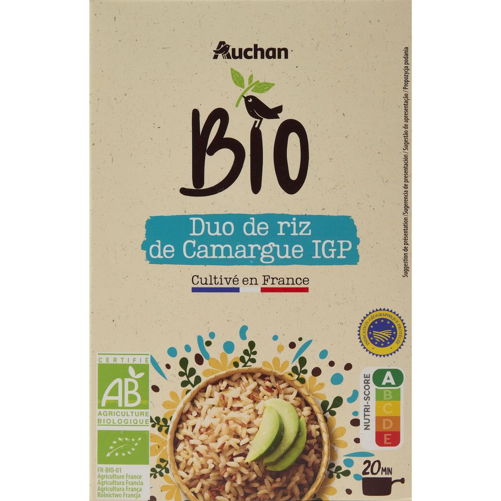 Le riz Auchan Bio 2 couleurs est produit en France dans la région de la Camargue