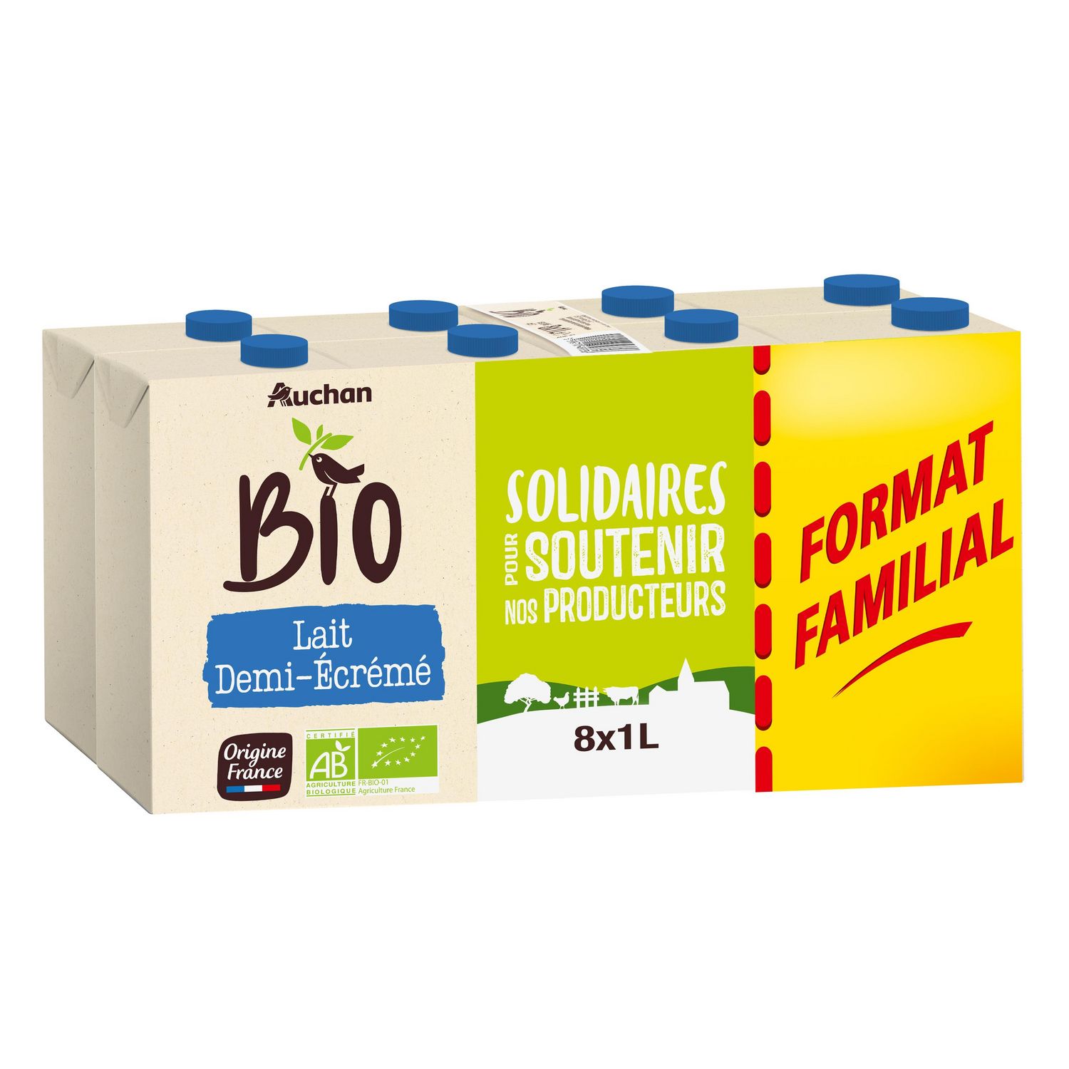 lait demi-écrémé issu de l'agriculture biologique stérilisé UHT