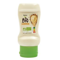 Ingrédients : huile de tournesol*, jaune d’OEUF* 7%, eau, MOUTARDE de Dijon* 3,1% (vinaigre de cidre* (caséines de LAIT), graines de MOUTARDE*, eau, sel, acidifiant : acide citrique), vinaigre d'alcool*, sucre de canne*, sel, arôme naturel de MOUTARDE. *biologiques.