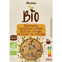 Mélange sarrasin lentilles corail quinoa rouge et graines de courge