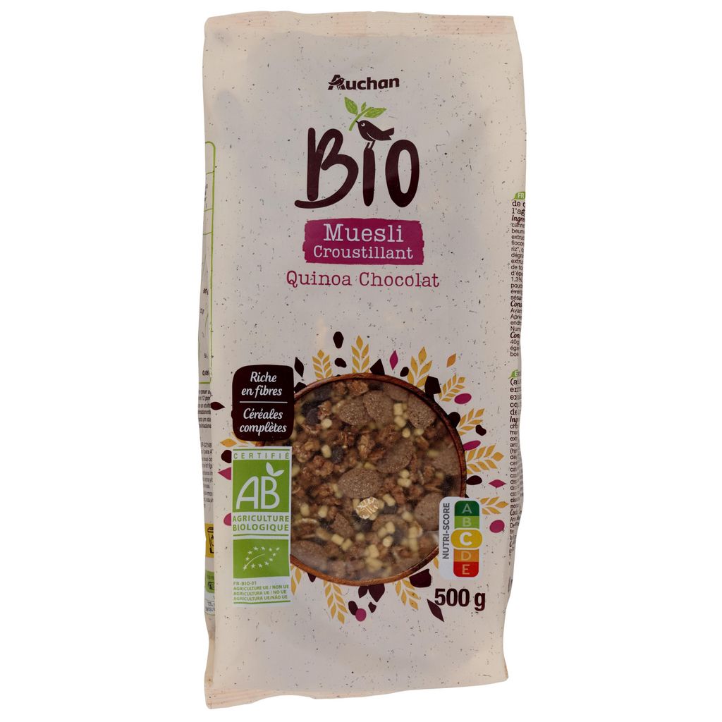 Mélange de céréales croustillantes, de quinoa et de chocolat issu de l'agriculture biologique.