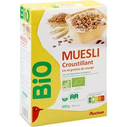 Muesli croustillant lin et graines de courge issu de l'agriculture biologique. muesli croustillant lin et graines de courge biologique