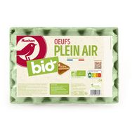24 œufs de catégorie A de poules élevées en plein air biologiques* (code commençant par 0 sur l'œuf), calibre Moyen ou Gros. * Conformément au mode de production biologique.