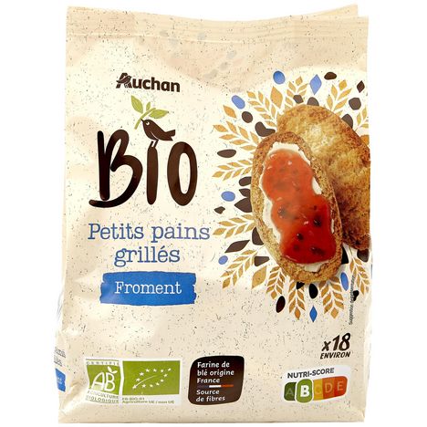 Petits pains grillés bio au froment, source de fibres et farine de blé origine France