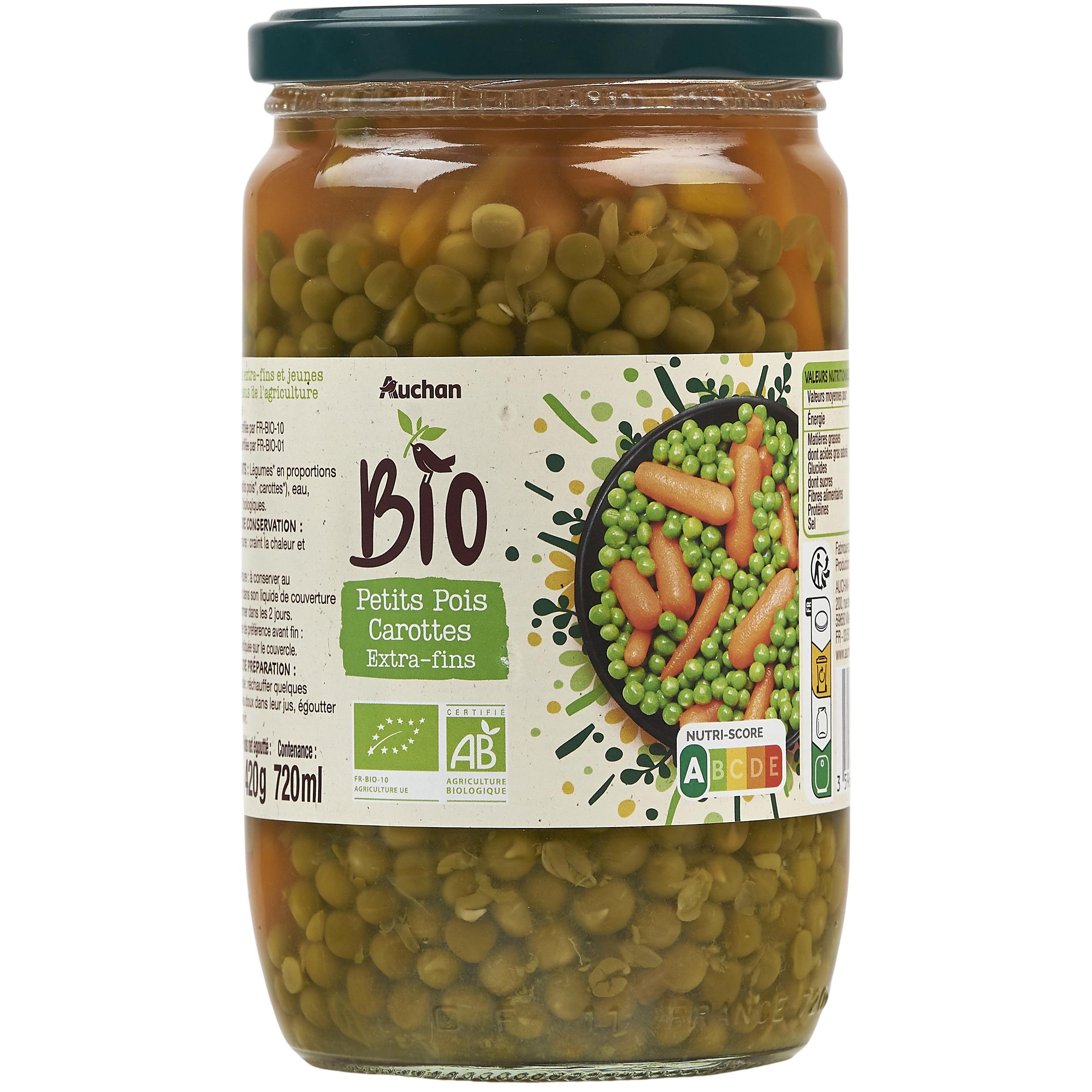 AUCHAN BIO PETITS POIS CAROTTES EXTRA FINS BOCAL 72 CL 420G