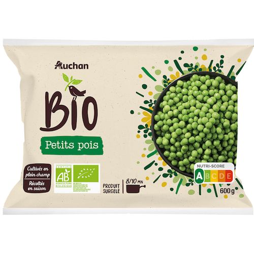 Petits pois issus de l'agriculture biologique surgelésProduction certifiée par BE-BIO-01 Distribution certifiée par FR-BIO-01