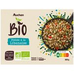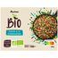 Mélange de lentilles cuites et riz complet cuit, de légumes et d'une sauce 11,1% à l'huile d'olive vierge extra 3,5% et aux épices, issu de l'agriculture biologique, surgeléproduction certifiée par Bureau veritas FR-BIO-10 et distribution certifiée par Ecocert FR-BIO-01, surgelé
