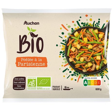 On prend soin de vous : Les ingrédients biologiques qui composent la poêlée à la parisienne Auchan Bio sont produits en respectant le cahier des charges rigoureux de l'agriculture biologique. Et parce que vous attendez d'une poêlée de légumes qu'elle soit la plus proche possible d'un plat que vous auriez fait vous même, Auchan a formulé pour vous cette recette sans arôme, sans colorant, sans conservateur.Profitez, il n'y a qu'à réchauffer!Et pour ne pas gaspiller : Chaque ingrédient de ce légume cuisiné a été surgelé individuellement ce qui vous permettra de réchauffer la quantité adaptée à vos besoins.