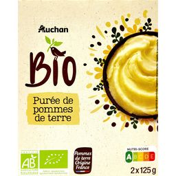 Elu meilleure purée disponible sur le marché français avec un nutriscore A.Classée sur la première marche du podium, la Purée de Pommes de Terre Nature d’Auchan Bio a atteint « la note maximale de 100/100 sur votre application de notation préféré.