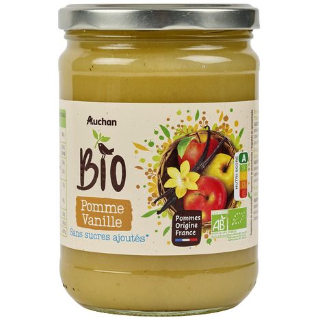 AUCHAN BIO Purée de pomme vanille sans sucres ajoutés en...