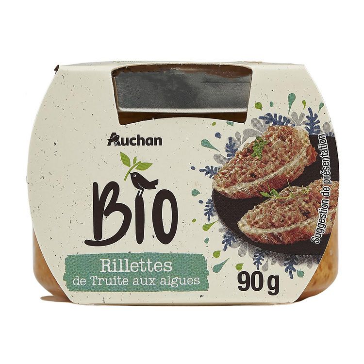 Rillettes de truite aux algues biologiquesProduction certifiée par Bureau Veritas Certification France FR-BIO-10Distribution certifiée par Ecocert FR-BIO-01
