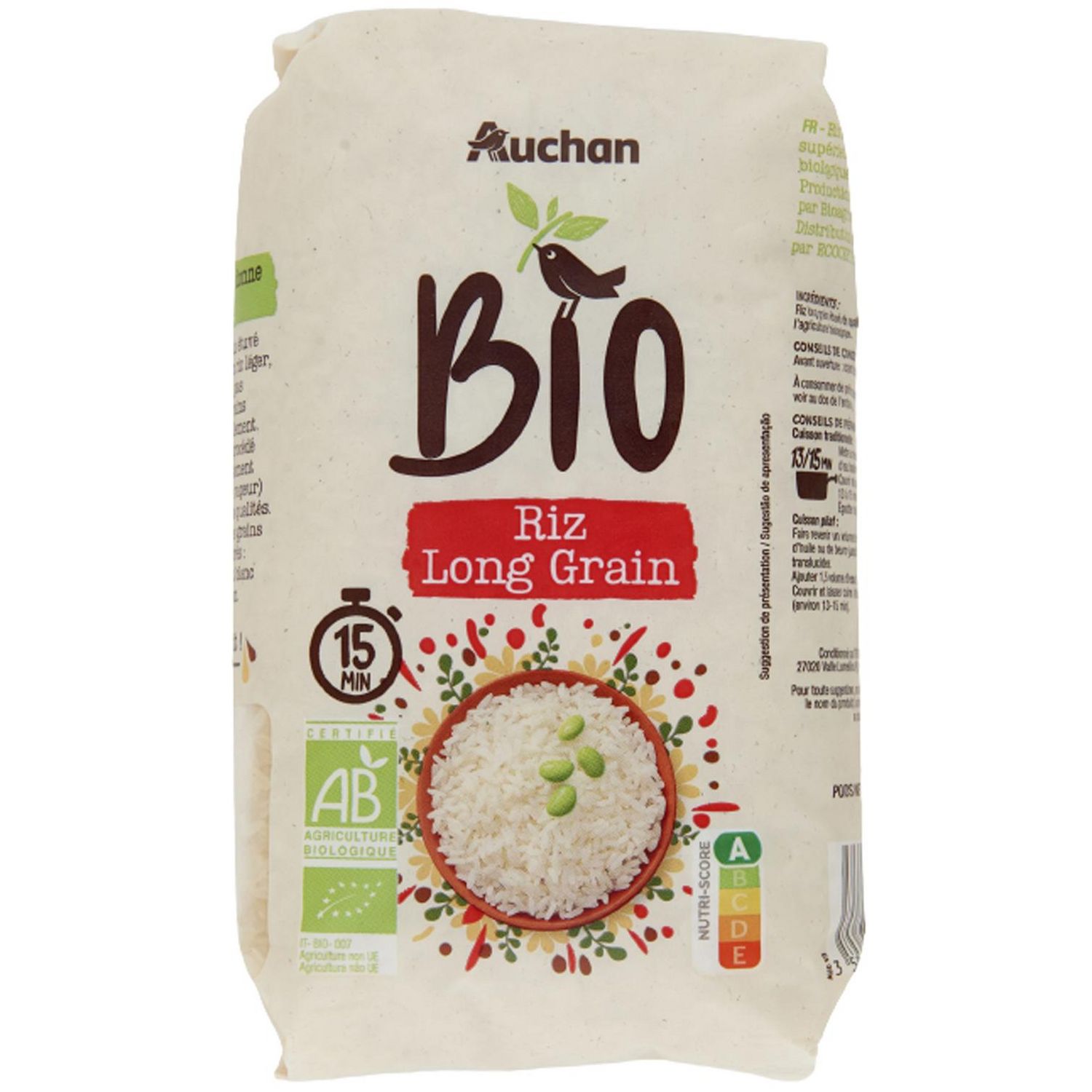 Ingrédients : Riz long grain étuvé de qualité supérieure issu de l'agriculture biologique
