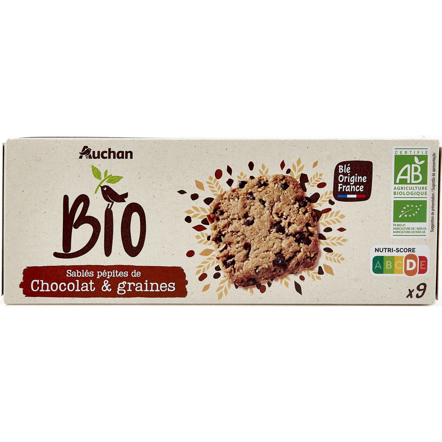 un sablé aux graines et aux pépites de chocolat fabriqué avec de la farine de blé française et sans huile de palme !